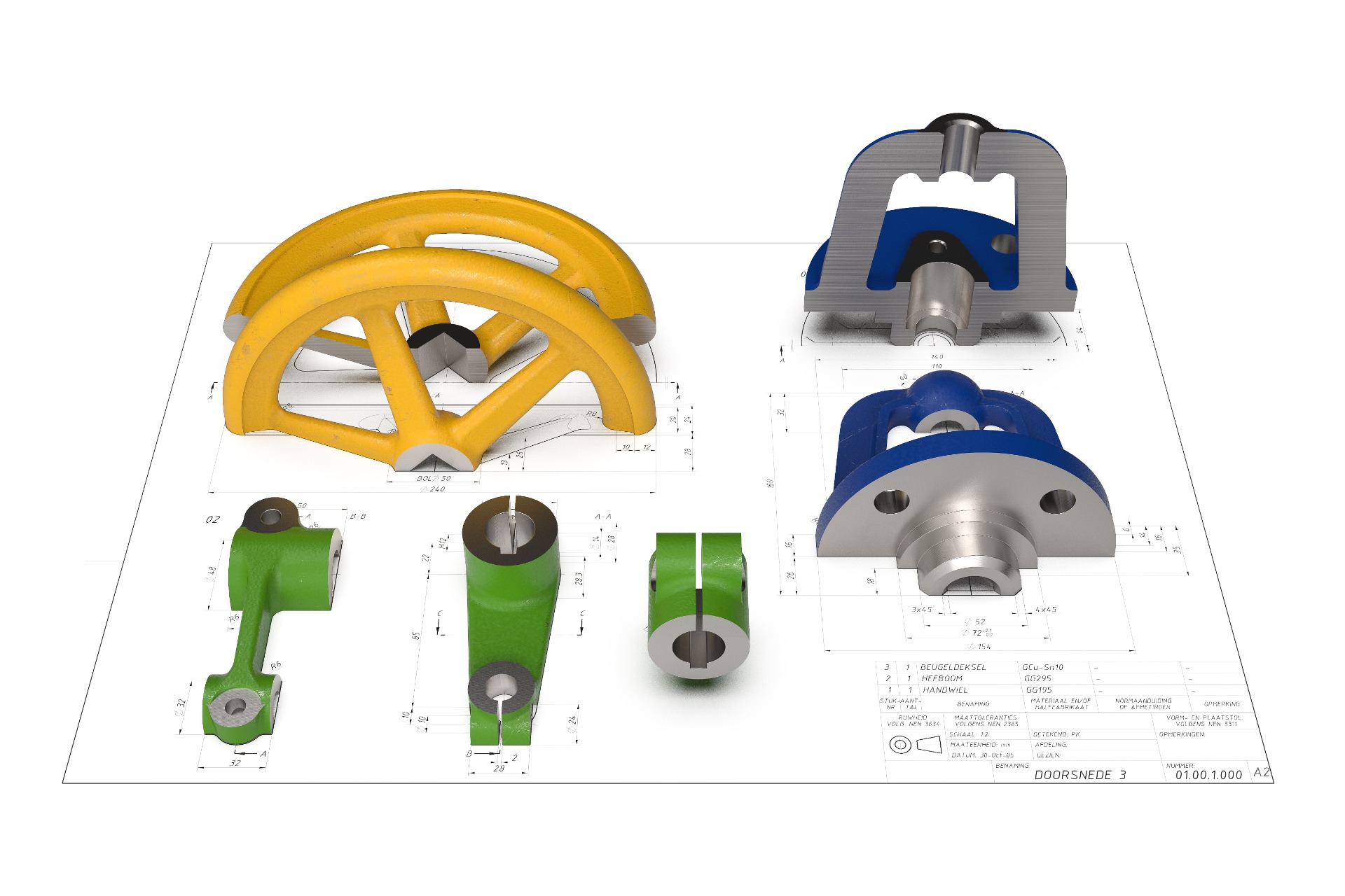 Ontwerpen en uitwerken van diverse onderdelen en frames.